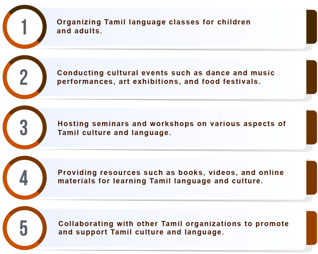 Kurinji Muthamizh Sangam is a non-profit established with a mission is to promote and preserve Tamil culture and language by evangelizing it to the community through programs, projects and initiatives.